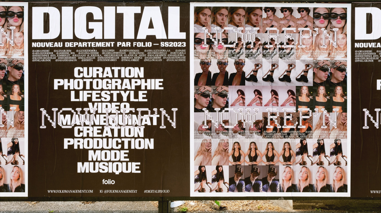 Talents Agency Folio launches a new department for Content Creators, bringing forth authenticity to invite genuine interest. Influenced by Y2K futuristic codes and fan art — such as collages and all things metallic — we've tapped into the movement brought by alluring personality and strong community. With a high profile energy and an all-exposed attitude, Digital pushes a boldly intentional typographic treatment and a font system pulling from outdated technologies.