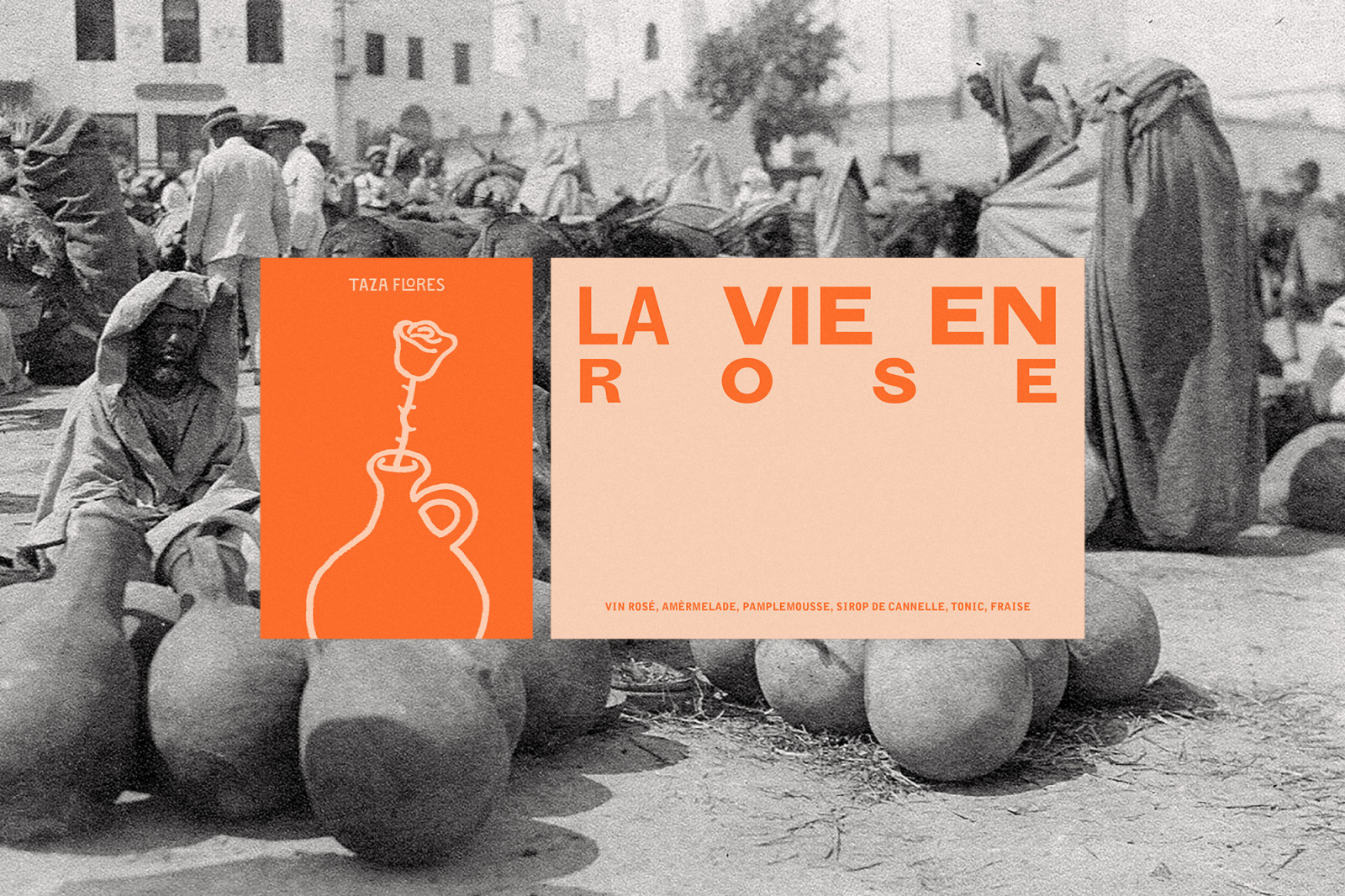 We created a multi-faceted identity with an array of hand-drawn logotypes, a seemingly unbalanced yet dynamic type treatment, and a series of hand doodles to highlight certain cocktails. The ‘vase’ illustration, which appears regularly throughout the identity, is inspired by a shape of pottery that is unique to Taza, Morocco. It was originally produced and sold in the souk’s (markets) of the city of Taza in the early 1900s. It also creates a parallel with the French expression ‘prendre un pot’, which means and implies ‘to relax and have a drink’.