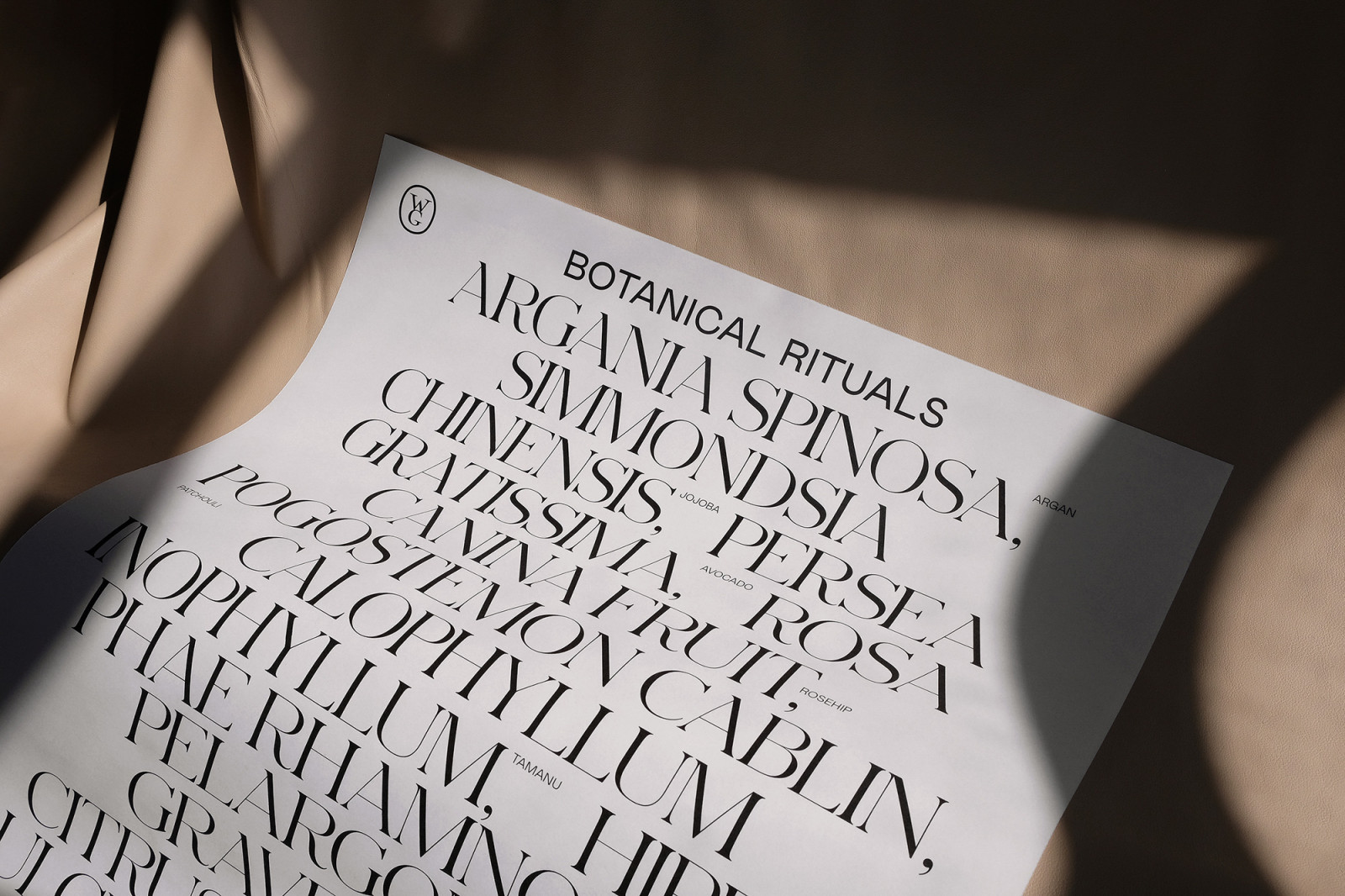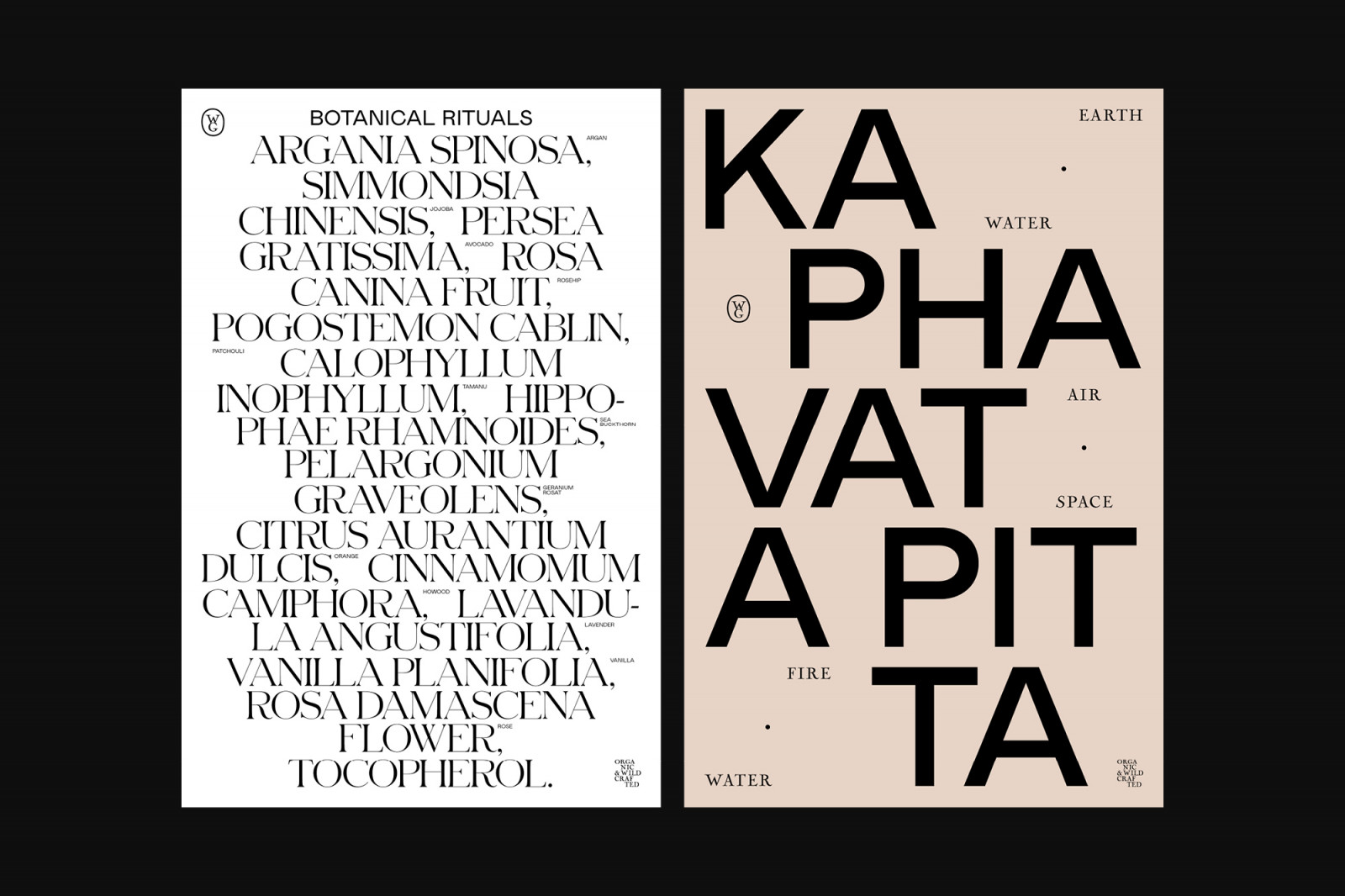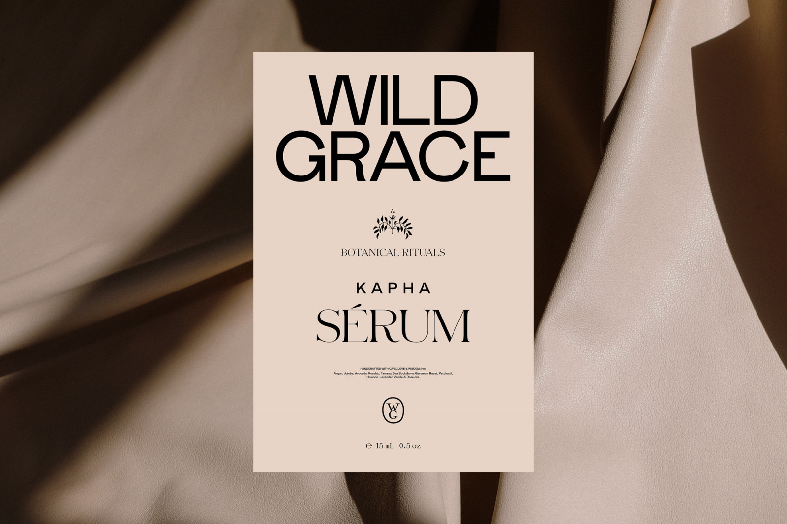 Identity and packaging design for Wild Grace, a skincare products line inspired by ancient Ayurveda, a general wellness medicine system originating from the Indian subcontinent that focuses on the mind, body and spirit balance. The visual identity is rooted in ancient and mystical practices – a balanced typographic play on sophisticated imperfection, modern and gestural properties, unusual and organic rhythm, and an old world personality. The minimal approach to the packaging line reflects the founders’ vision – to develop a refined, almost exclusive eco-luxe product that merges method, tradition and precision with humanity and ritual.
