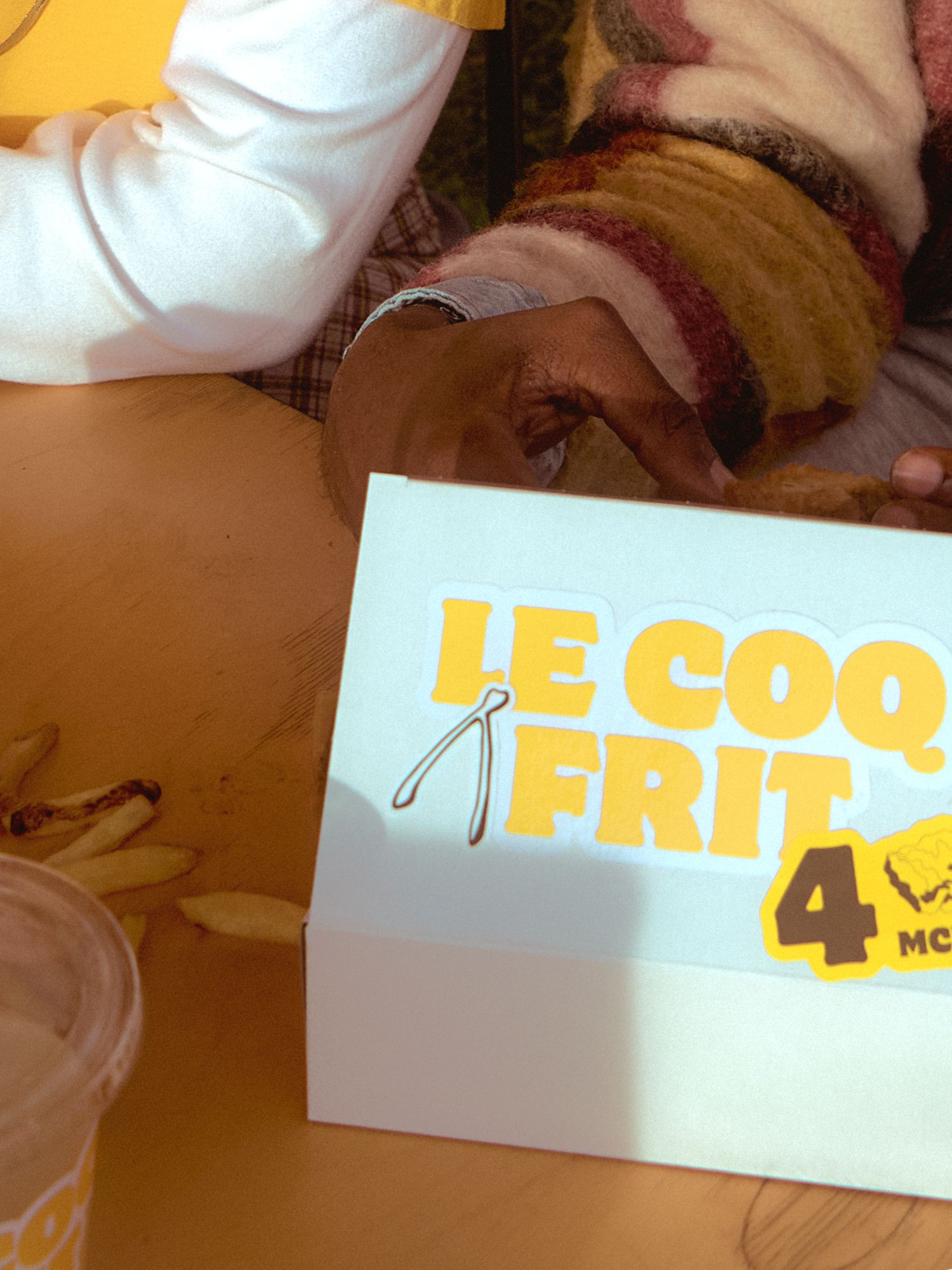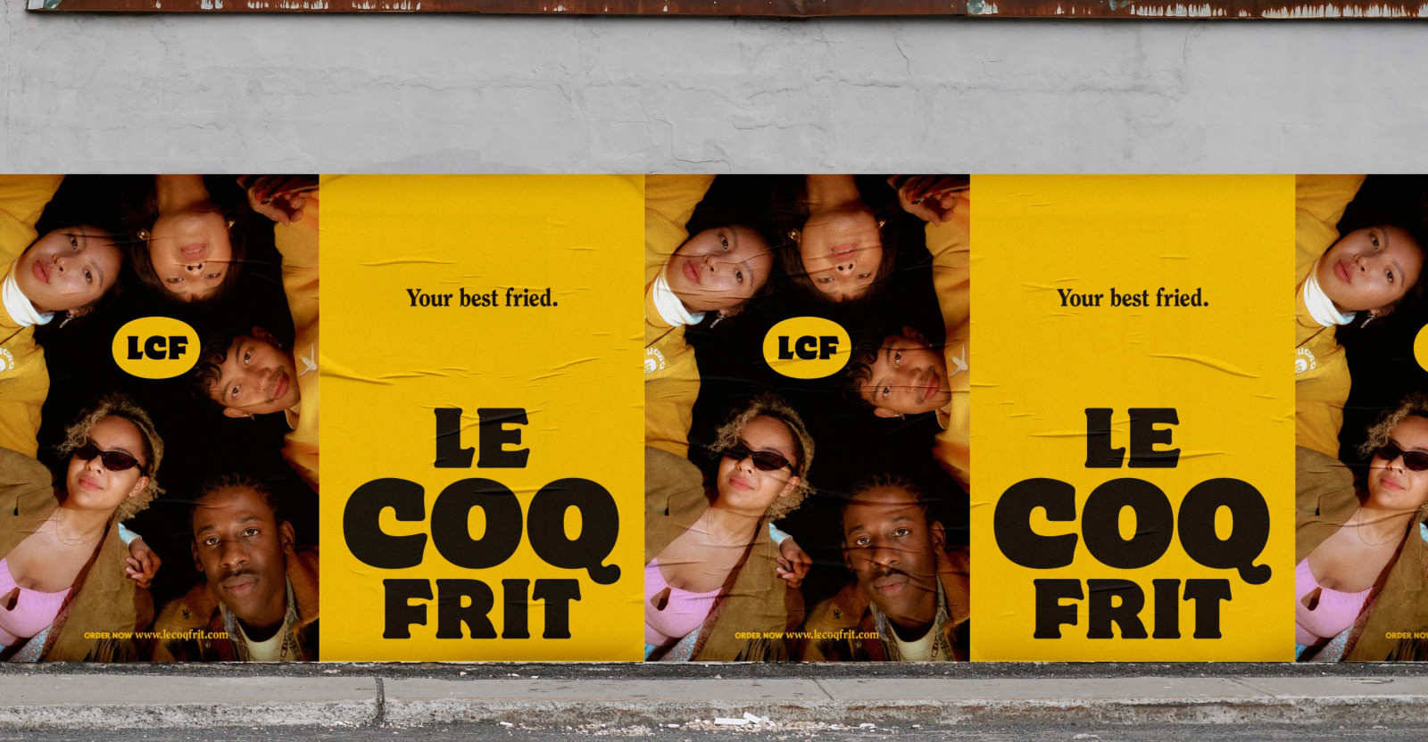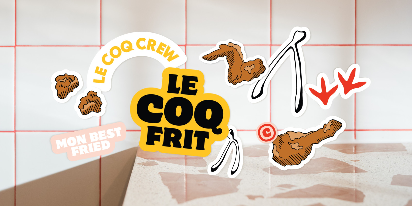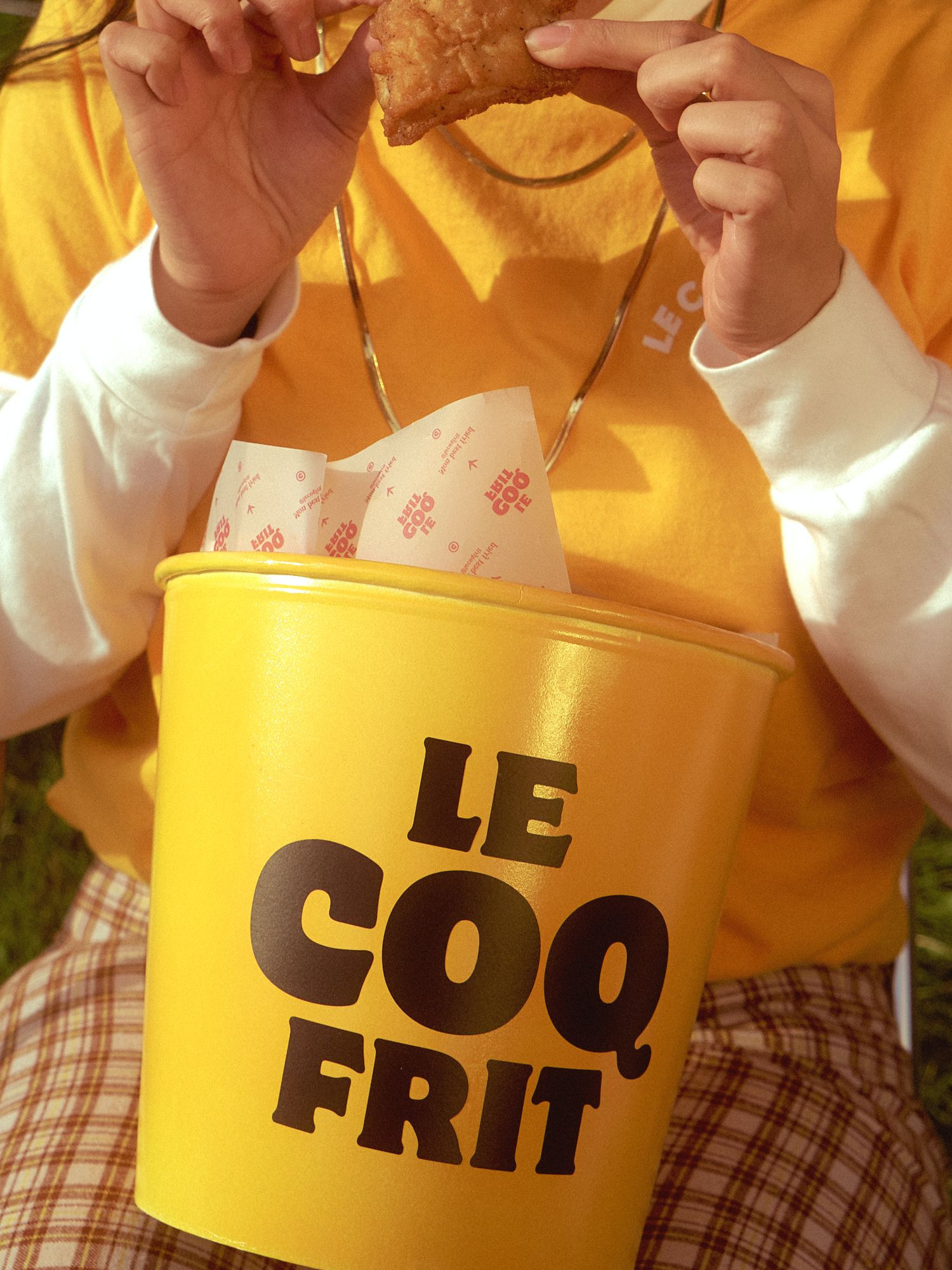 A frank and cheerful fried chicken chain led by two young food delivery top dogs – able to hold its spot against the fast food chains aesthetic. Inspirited by the 'cheatfood' classics big names and the gathering effect of food in a bucket, Le Coq Frit is enticingly fun, with a side of comforting shared ways and lingo. With temporary tattoo style illustrations and typefaces carrying the punch and comfort of crispy chunks, the brand is all that and a bucket of chicken.