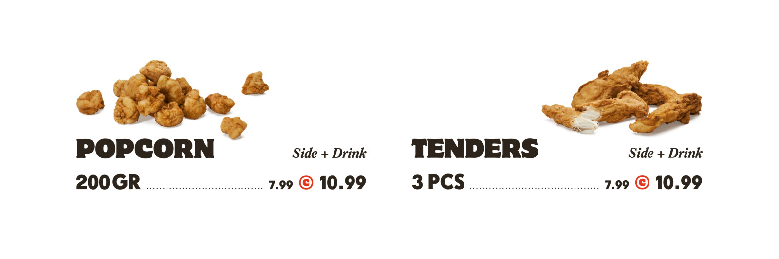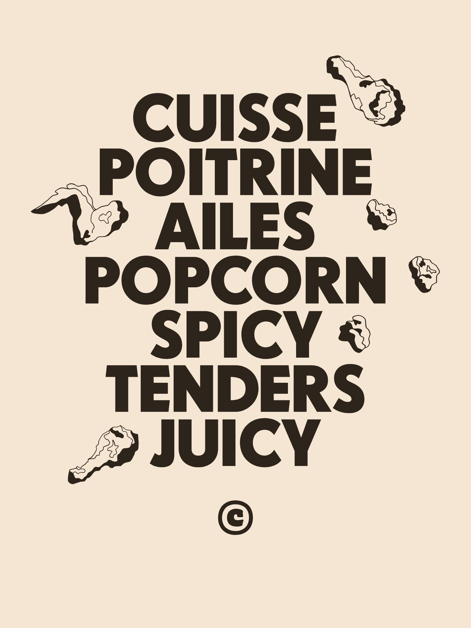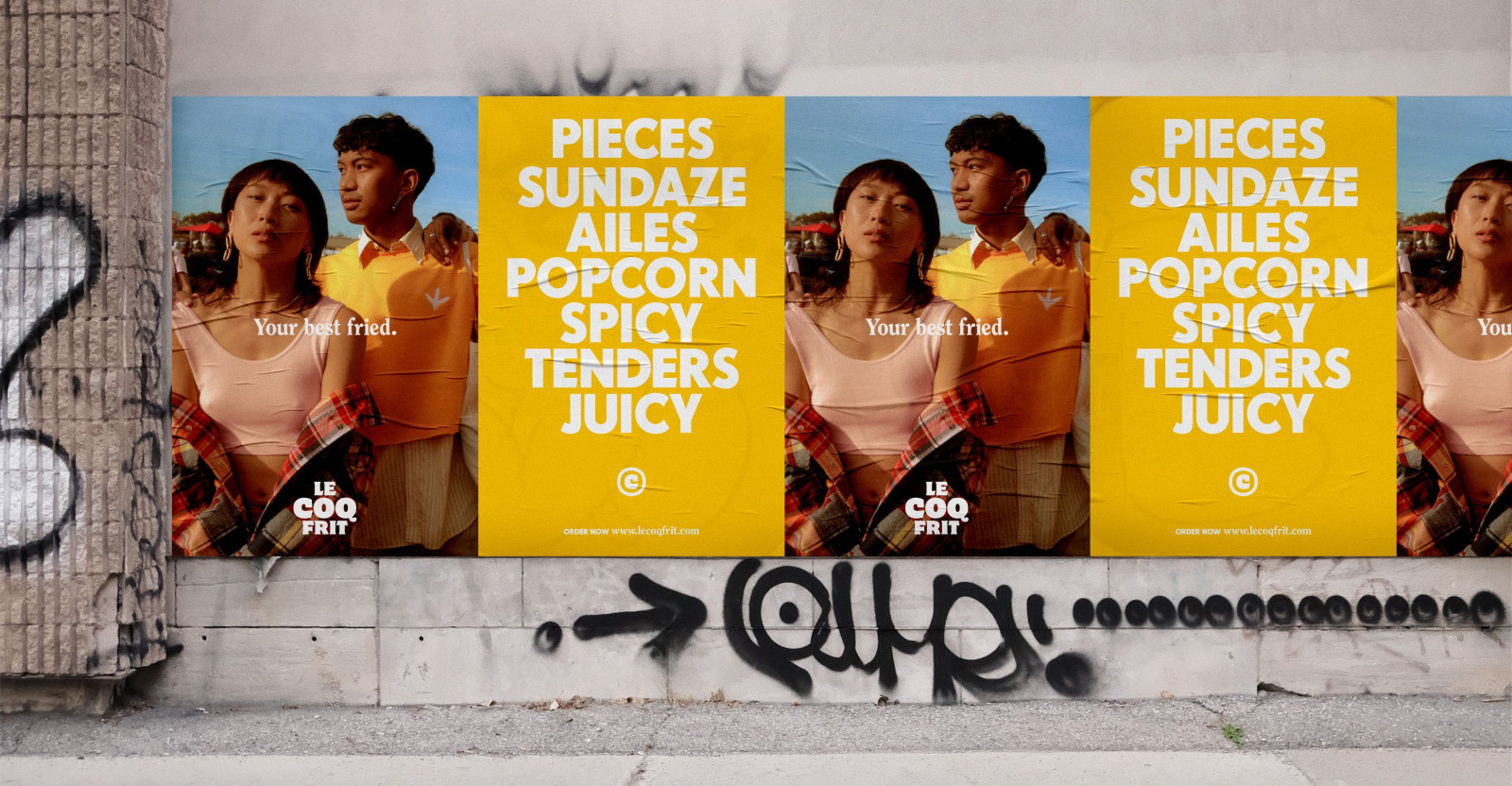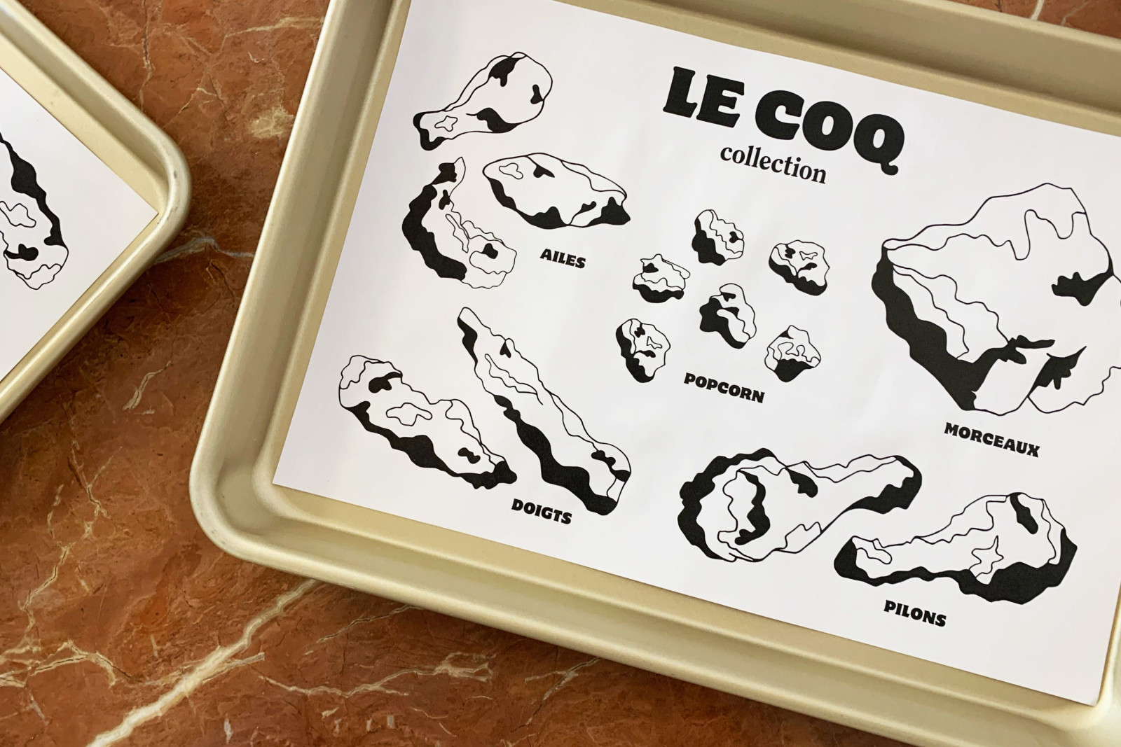 A frank and cheerful fried chicken chain led by two young food delivery top dogs – able to hold its spot against the fast food chains aesthetic. Inspirited by the 'cheatfood' classics big names and the gathering effect of food in a bucket, Le Coq Frit is enticingly fun, with a side of comforting shared ways and lingo. With temporary tattoo style illustrations and typefaces carrying the punch and comfort of crispy chunks, the brand is all that and a bucket of chicken.